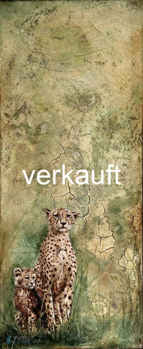 In meinen Werken geht es um die Verschmelzung von Natur und Leben. Die Strukturen, die wie Risse im Boden oder zerklüftete Felsen wirken, greifen direkt in die Darstellung von Menschen und Tieren ein. Sie verbinden das Lebendige mit dem Unbelebten und schaffen einen Dialog zwischen Form und Materie.