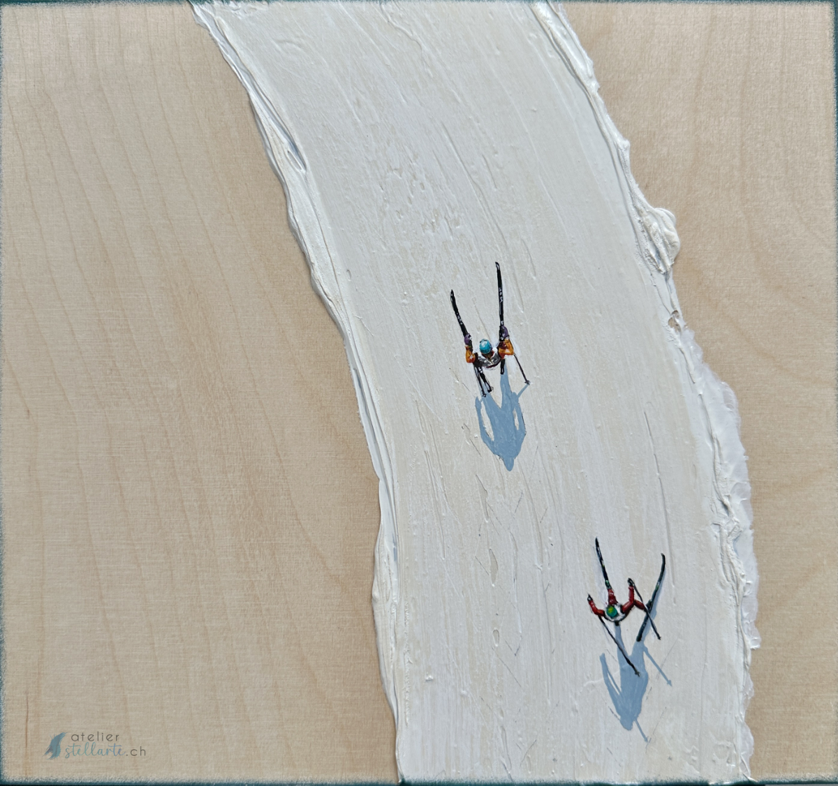 Ein zentrales Element meiner Arbeiten ist der Einsatz von Schatten. Sie erzeugen nicht nur Tiefe, sondern lassen die Motive fast aus der Leinwand hervortreten. Die Schatten interagieren mit den strukturellen Oberflächen und schaffen eine Illusion von Raum, die sich je nach Blickwinkel verändert. Was zunächst aus der Distanz flach und wie eine realistische Malerei aussieht, gewinnt durch Nähe, Licht und Schatten an dreidimensionaler Präsenz.